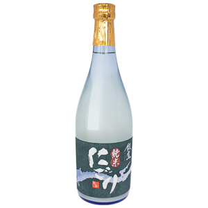 月山水系の上水道水を大乗水濾過して仕込み水に使用、アミノ酸度を高めないよう速やかにもろみを発酵させ辛口に仕上げています。すっきりとした味わい。